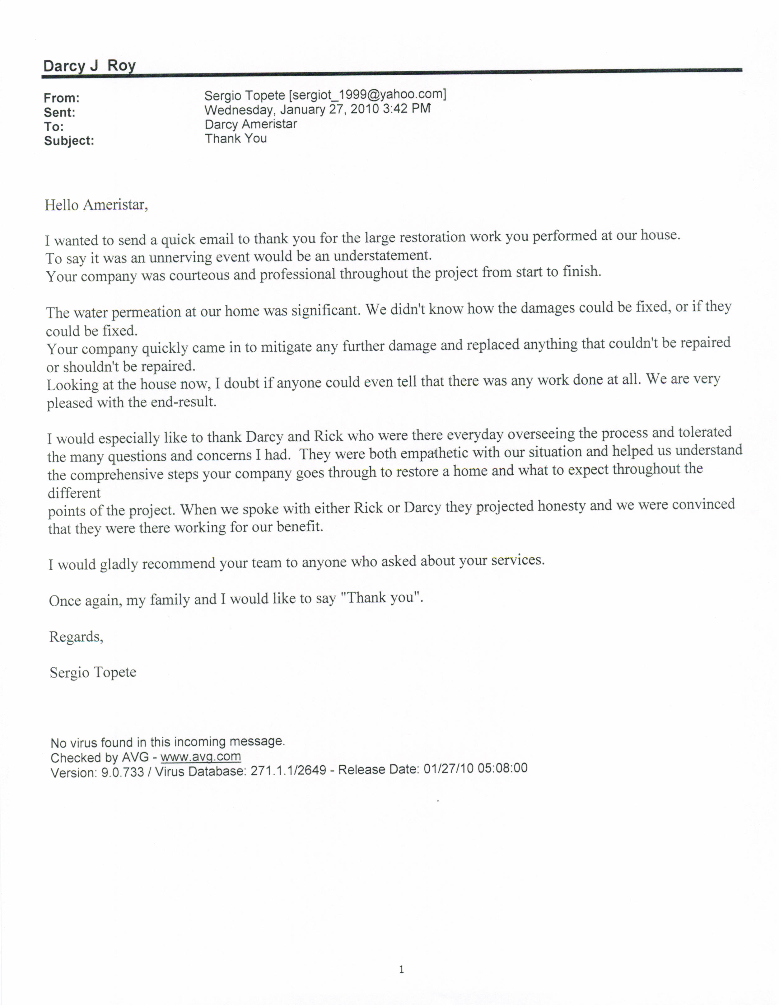 Topete Thank You Letter